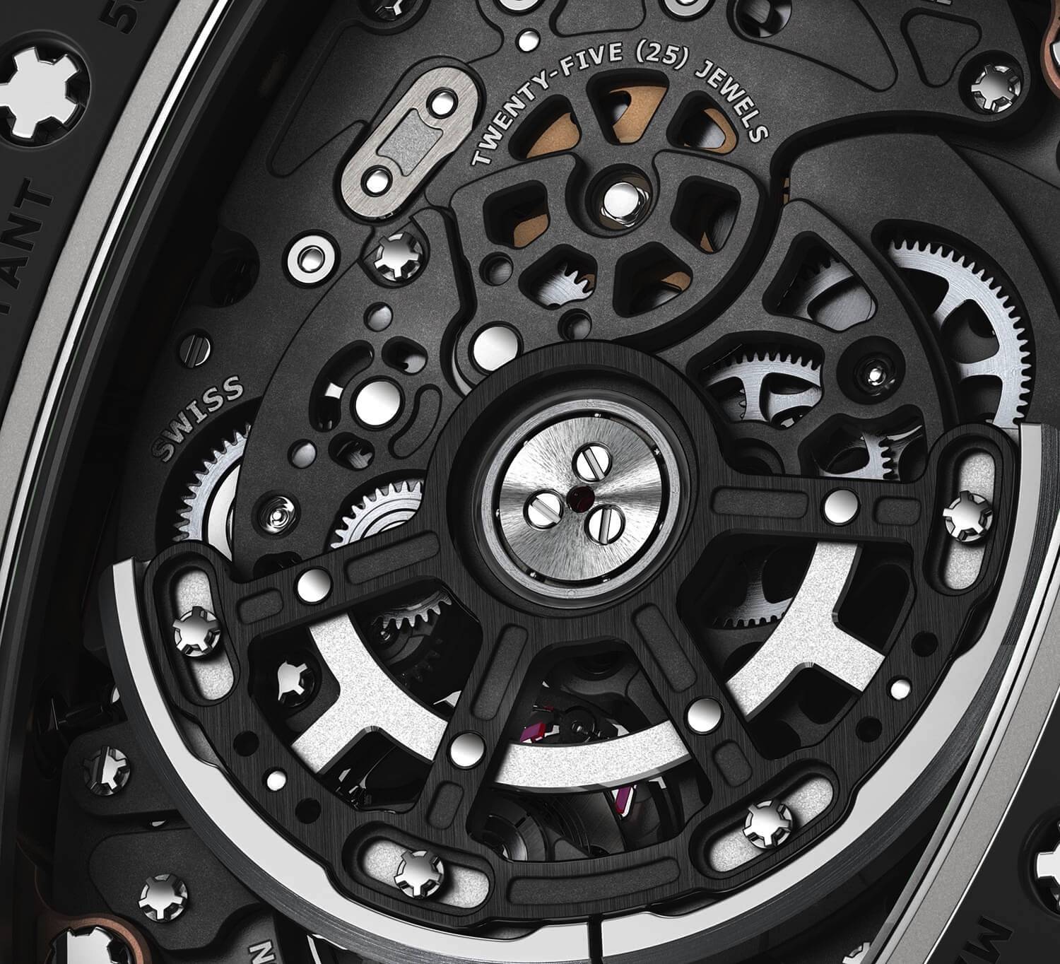 我们精通钛合金或现代复合材料的复杂零件的设计和加工,以及我们通过齿轮系的计时性能专业知识,使我们能够加工基板,桥梁,钢零件和车削零件以及石英制成的零件或碳TPT®,用于RM 50-03的分秒计时桥。