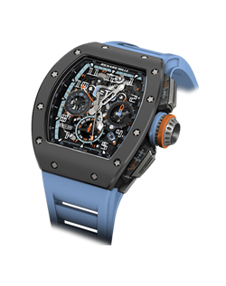 RM 11-05以轻盈和刚性为傲, 结合了飞返计时码表、GMT显示和年历功能。 极为罕见的机械装置,采编号限量发行,仅有140枚。