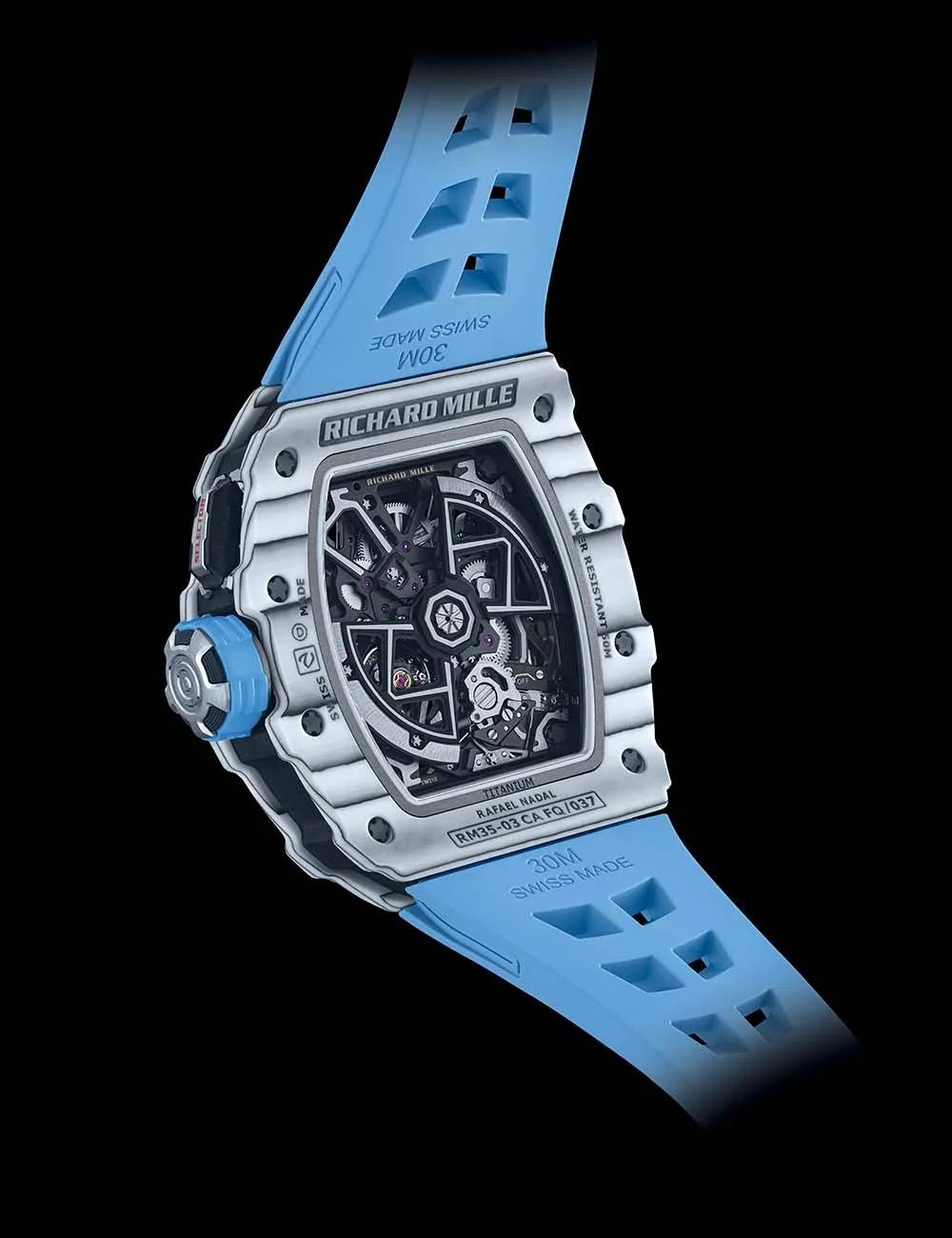RM 35-03 Rafael Nadal自动上链腕表是RM 035系列的第四款,推出了全新的上链装置,命名为“蝶形摆陀”。这项专利发明使佩戴者能够直接控制自动机芯的上链。这种全新的方式,让您在任何情况下都能与腕表保持联系。