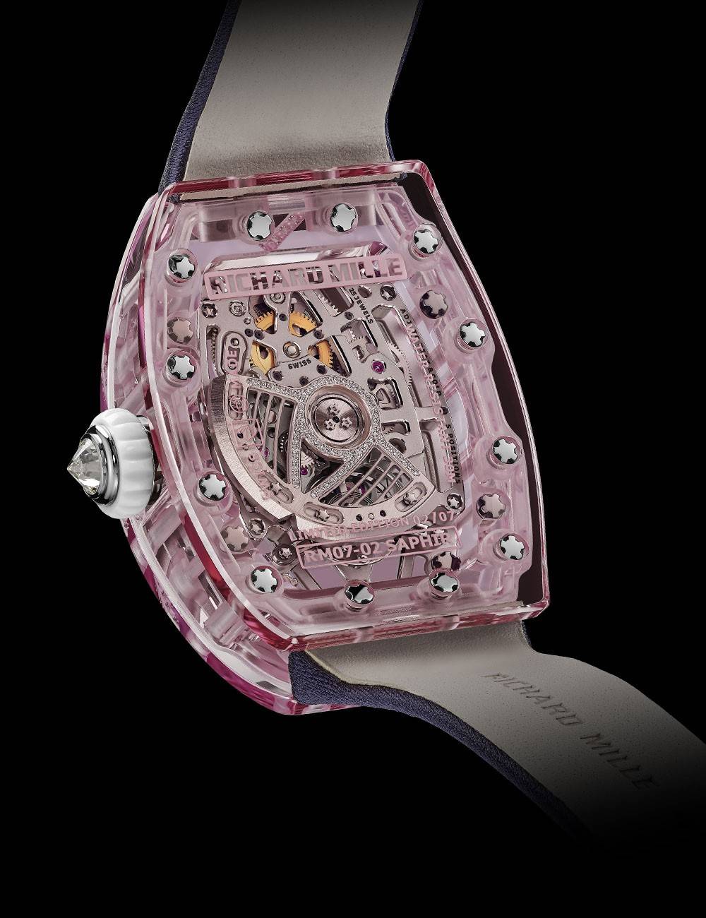 “RM 07-02蓝宝石水晶自动上链腕表为技术工艺注入妩媚风韵,在为其装点优雅色调之余仍保有透视效果。我们需要在保持透视效果的同时,添加优雅气质,以及足够醒目的色调。”