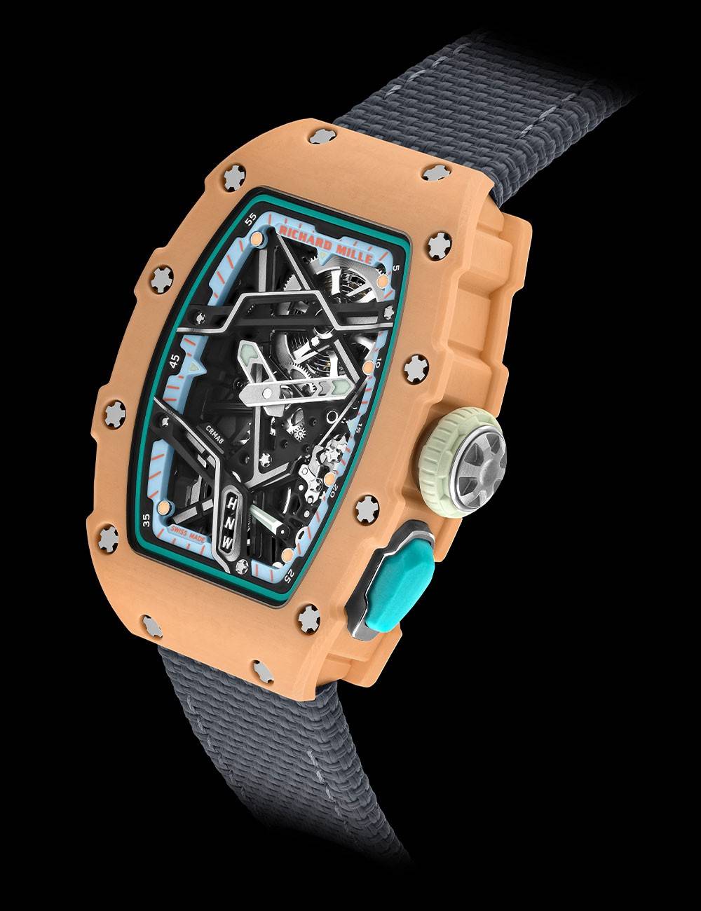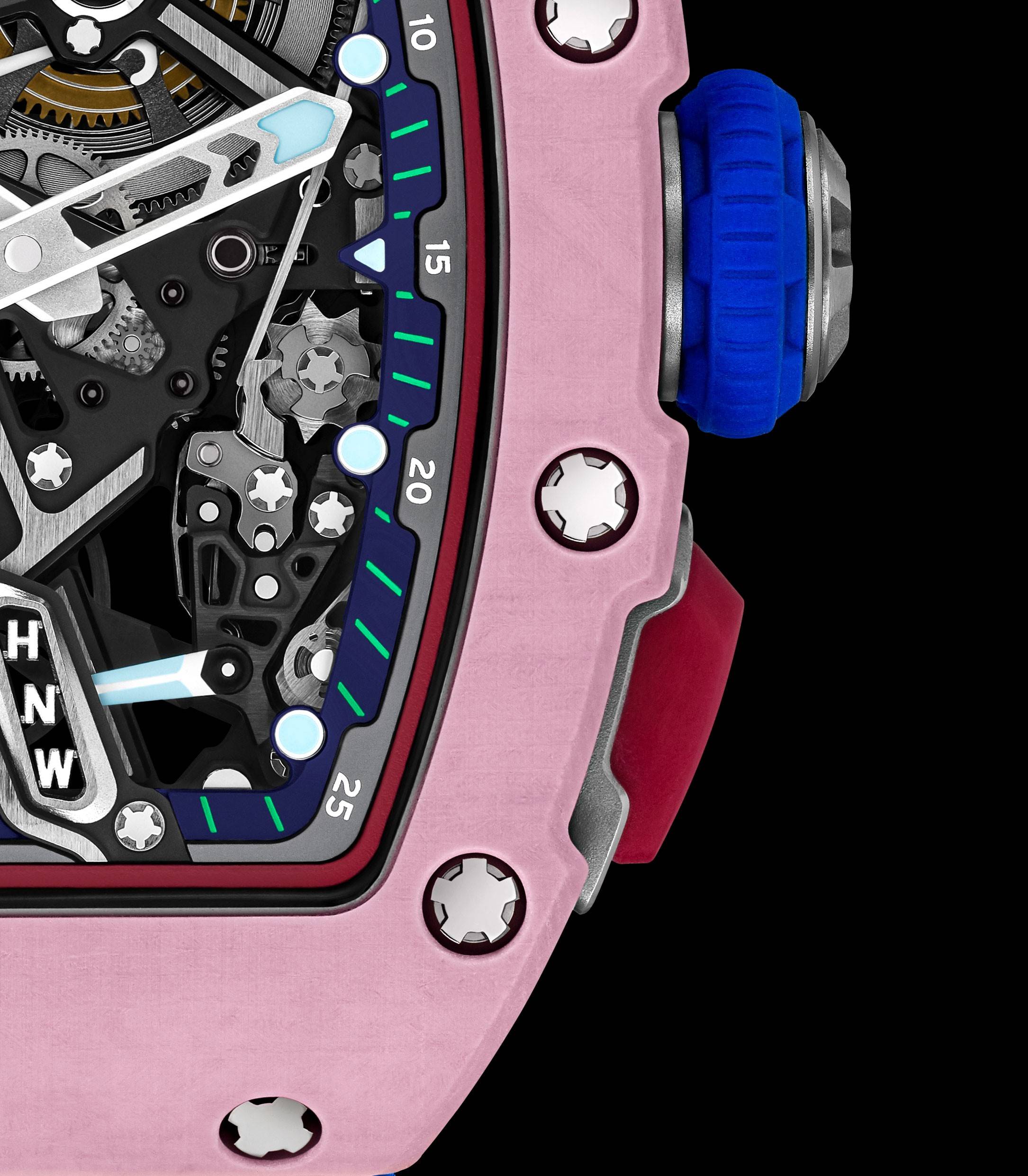 RM 07-04(含表带)总重量仅为 36 克,是该类腕表领域中至轻、设计大胆,且充满活力的代表作品。