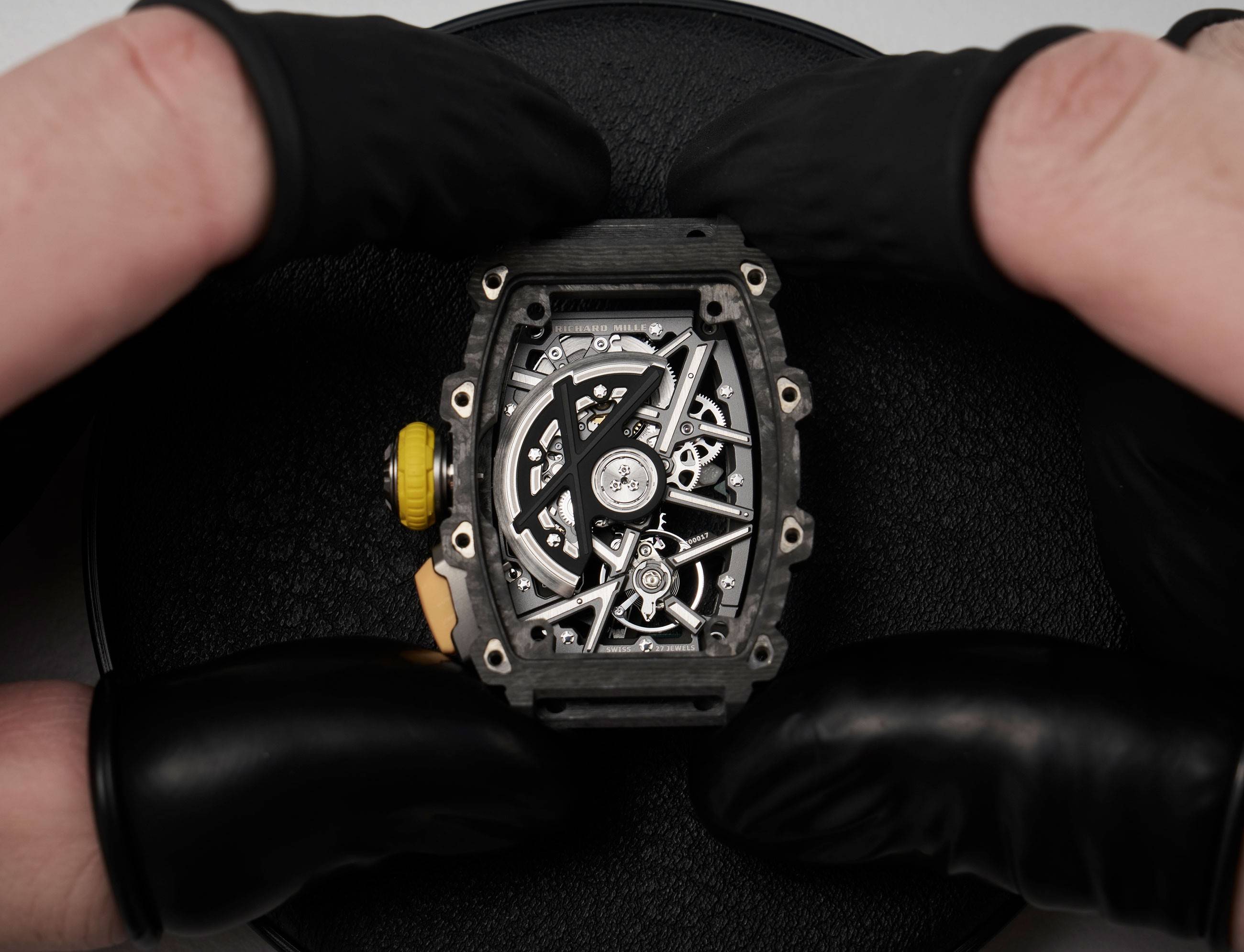 RM 07-04自动上链运动腕表及其CRMA8机芯的研发前后耗时三年,期间克服了诸多难题:这款品牌自主研发的镂空自动机芯,其结构小巧紧凑,在确保可以承受5,000g加速度冲击的同时将表壳与机芯完美融合,并且腕表的内部运转一览无余。至臻的精工修饰将这款毫不妥协的机械结构彰显得分外优雅。机芯的结构高度紧凑,大大增加了制表师的装配耗时,容不得丝毫差错,凸显了制造水平的卓越品质。