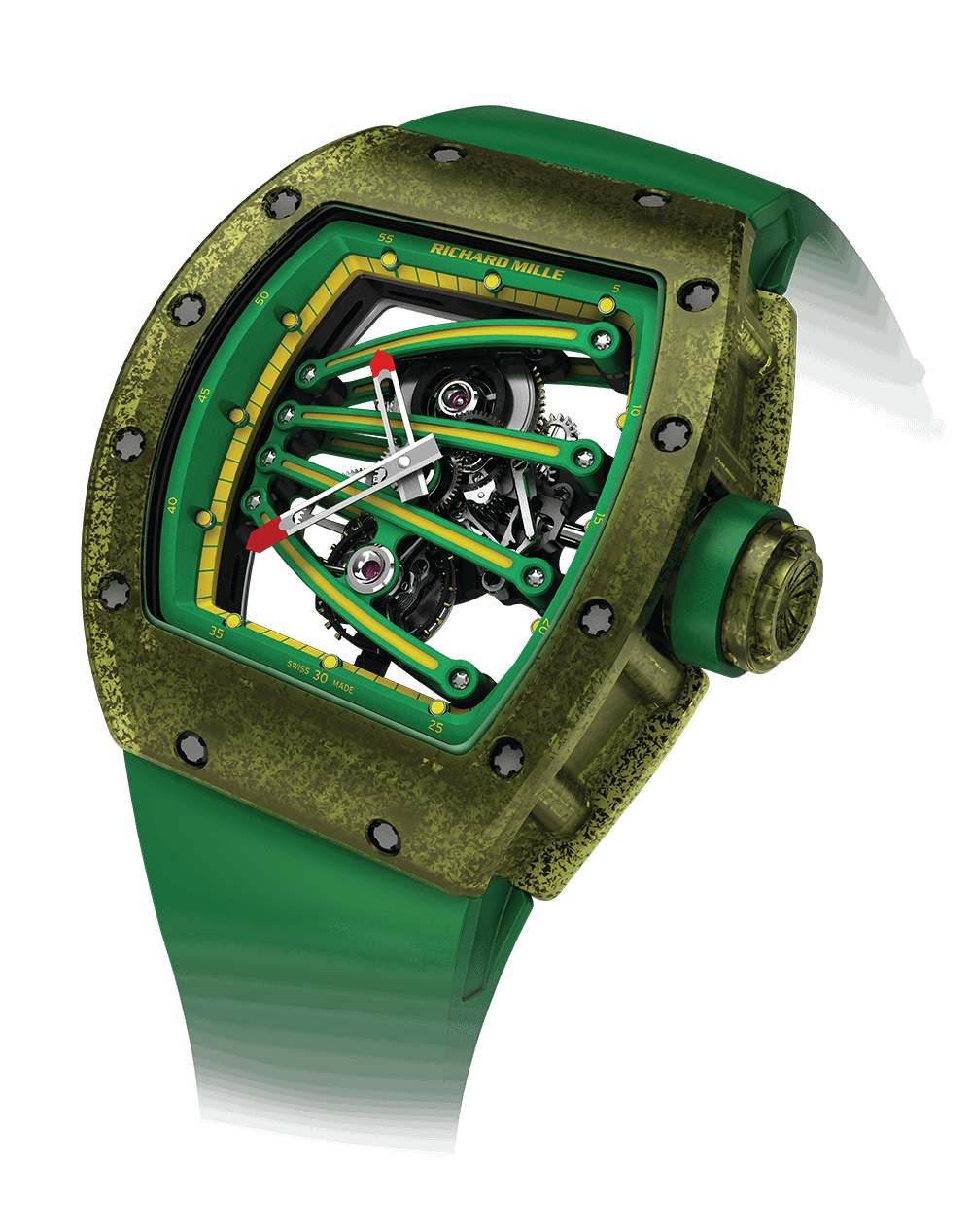 RM 59-01外壳由一种半透明的复合材料制成,该复合材料由注入的碳纳米管组成,为运动和中央陀飞轮提供完美的减震保护。